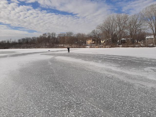 The open water area continues to expand, thanks to the presence of both warmer weather and the many waterfowl. The open water area has now expanded to roughly 300' x 800'. Dozens of geese, ducks and swans populate the area.